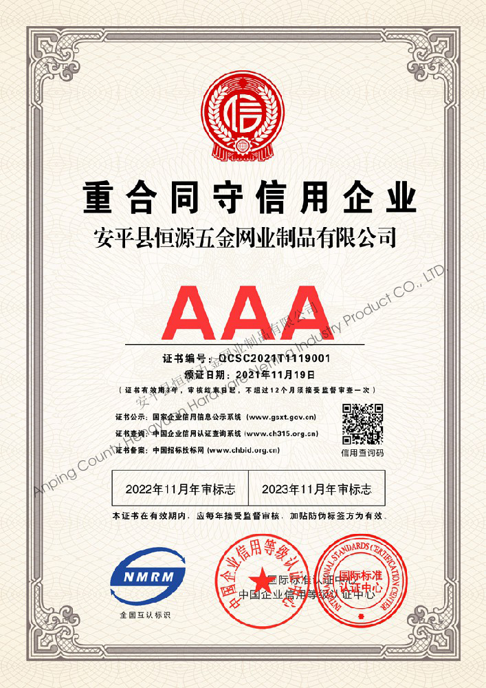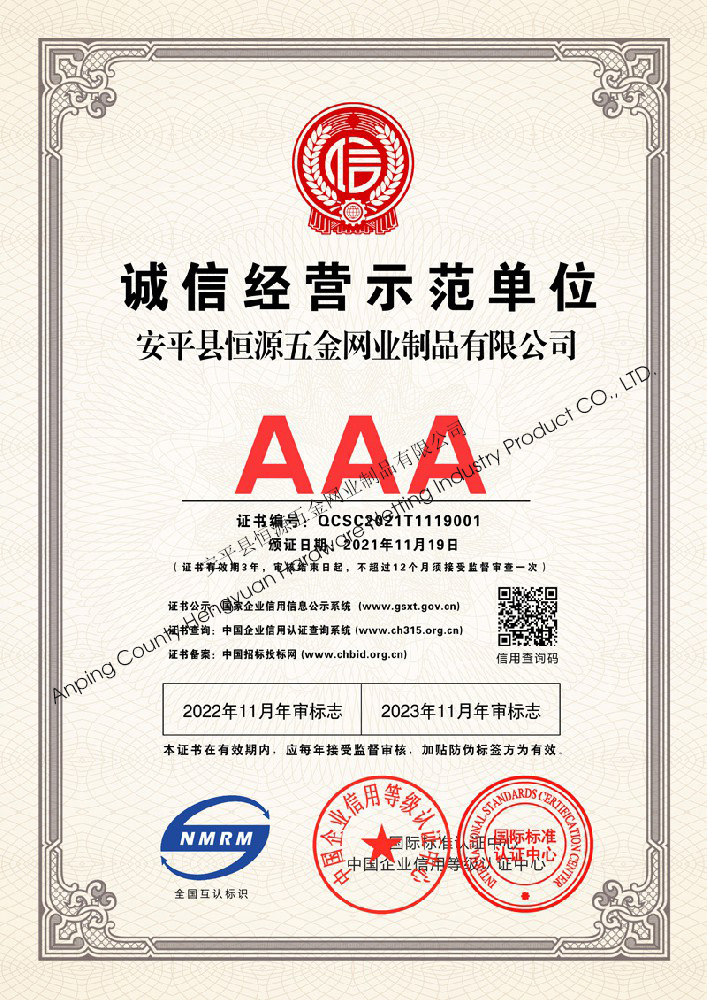 安平縣恒源五金網(wǎng)業(yè)制品有限公司,位于“絲網(wǎng)之鄉(xiāng)” 河北省安平縣,其前身為安平縣礦篩網(wǎng)廠(chǎng),成立于2006年,注冊(cè)資金300萬(wàn)元,是建廠(chǎng)時(shí)間較早、生產(chǎn)銷(xiāo)量較大的礦篩網(wǎng)骨干企業(yè)。