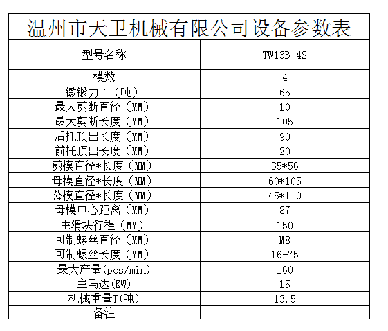 您當(dāng)前的位置:首頁(yè) / 產(chǎn)品中心 / 四模四沖冷鐓機(jī) / └ TW13B(M8)全自動(dòng)多工位冷鐓機(jī) / TW13B-4S全自動(dòng)多工位冷鐓機(jī)
