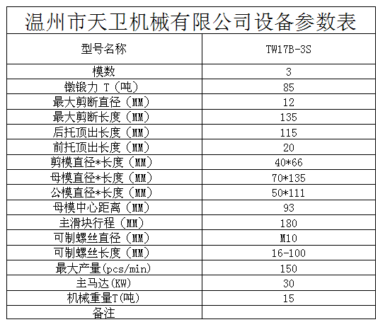 您當(dāng)前的位置:首頁 / 產(chǎn)品中心 / 三模三沖冷鐓機(jī) / └ TW17B(M10)多工位冷鐓機(jī) / TW17B-3S全自動(dòng)多工位冷鐓機(jī)